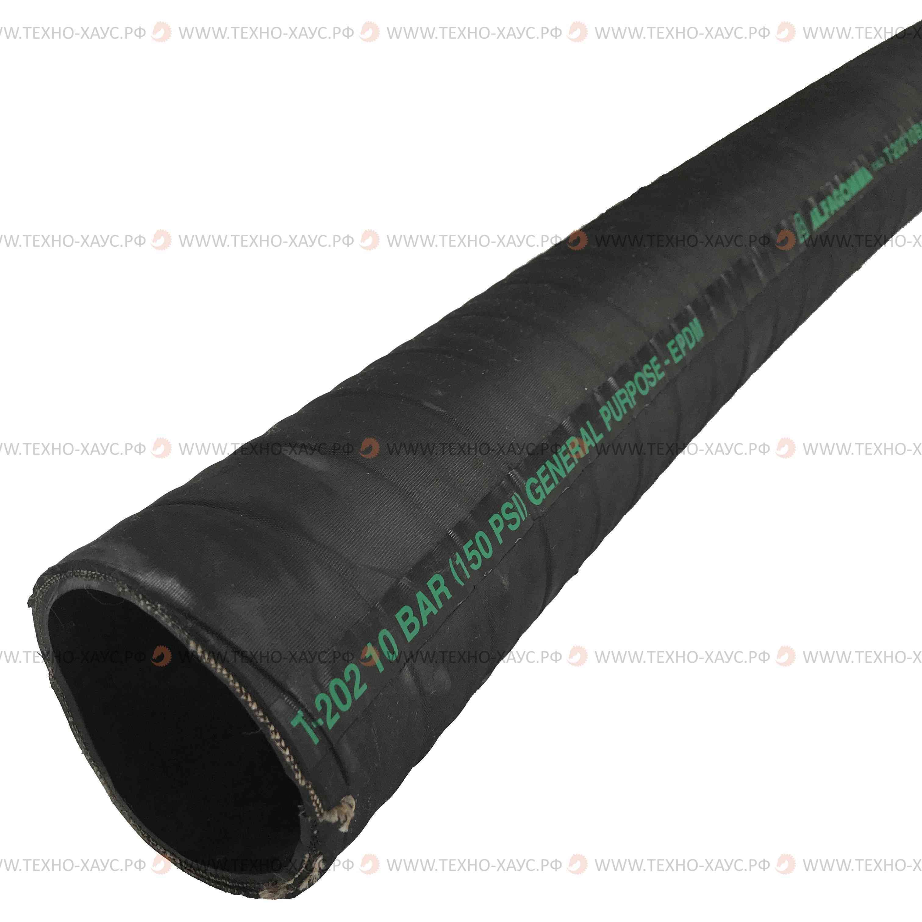 Рукав черного цвета с непрерывной маркировкой зеленого цвета “ALFAGOMMA Italy 202 10bar (150Psi) GENERAL PURPOSE - EPDM
